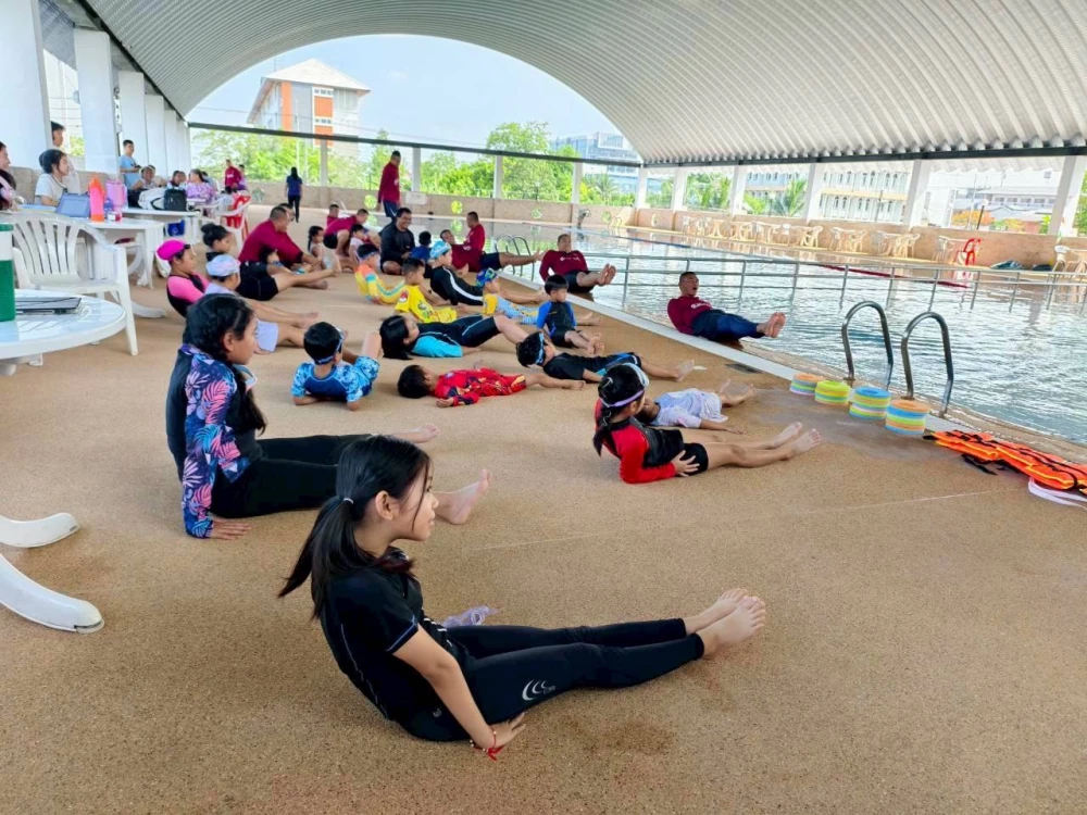 The event featured a variety of practical learning activities, including kicking exercises, pool-edge holding techniques, floating practice, and proper introductory swimming lessons. The objective was to equip participating youths with essential swimming skills while also teaching them how to respond appropriately and safely to water-related emergencies. Topics included self-rescue in drowning situations, how to call for assistance effectively, and basic lifesaving guidance for water accident victims. These are critical life skills that can significantly help reduce the risk of drowning and loss of life.