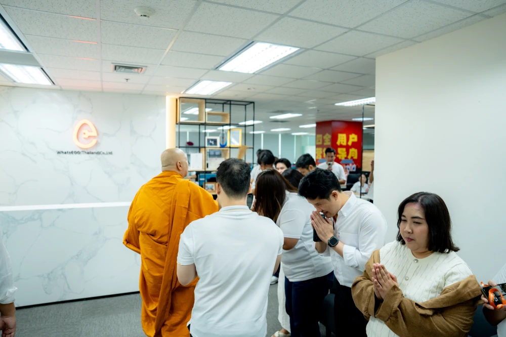 การทำบุญในครั้งนี้ ยังถือว่าเป็นฤกษ์ดีในการย้ายสำนักงานของ WhatsEGG จากอาคาร253 ถนนสุขุมวิท21 เขตวัฒนา มายังอาคารรัจนาการ เขตสาทร กรุงเทพมหานคร นับเป็นอีกก้าวสำคัญขององค์กร ด้วยทำเลใจกลางเมืองที่ช่วยเพิ่มความสะดวกในการติดต่อประสานงานกับลูกค้าและพันธมิตรทางธุรกิจได้อย่างมีประสิทธิภาพ พร้อมสะท้อนความพร้อมในการดำเนินงาน เพื่อรองรับการเติบโตและก้าวสู่อนาคตอย่างมั่นคง