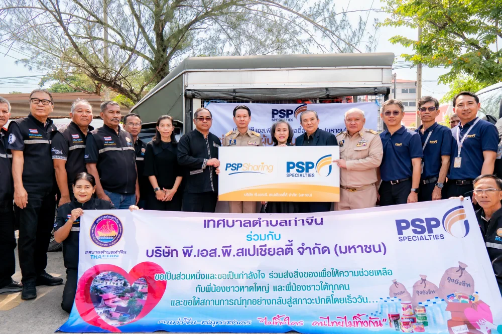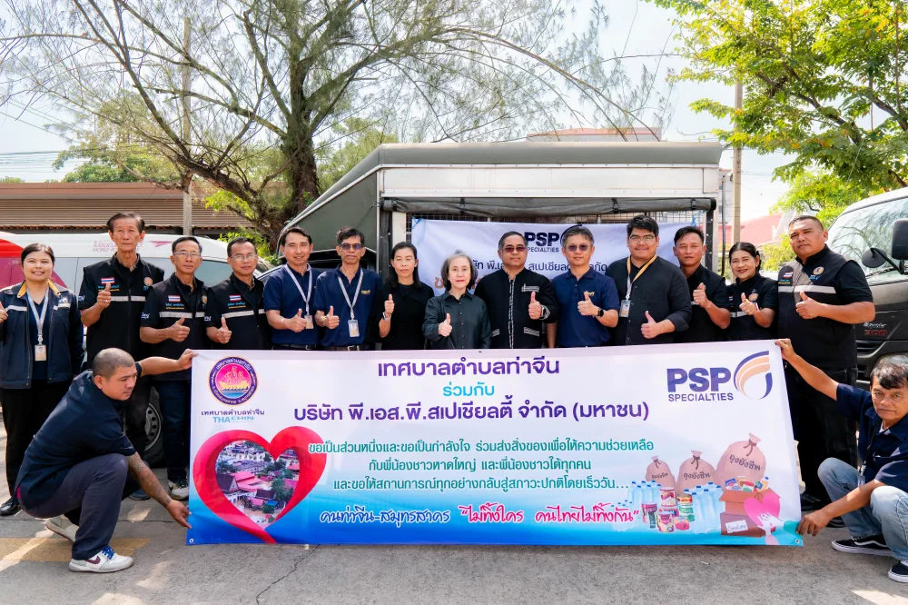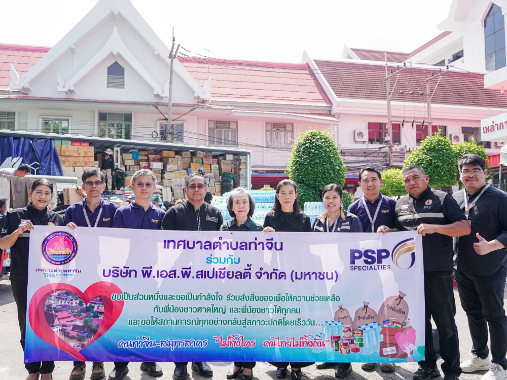 วันที่ 27 พฤศจิกายน 2568 บริษัท พี.เอส.พี.สเปเชียลตี้ส์ จำกัด (มหาชน) นำโดย คุณอุไรลักษณ์ ครองพาณิชย์ ผู้บริหารบริษัท คุณณรงค์ศักดิ์ เย็นสกุล และตัวแทนบริษัท พร้อมคณะผู้บริหารท้องถิ่น นำโดย ดร.รังสรรค์ เจียระนัย นายกเทศมนตรีตำบลท่าจีน จังหวัดสมุทรสาคร เข้ามอบข้าวสาร อาหารแห้ง เสื้อชูชีพ และชุดของใช้จำเป็น ให้แก่เหล่ากาชาดจังหวัดสมุทรสาคร เพื่อนำไปช่วยเหลือและบรรเทาความเดือดร้อนของผู้ประสบอุทกภัยในพื้นที่ภาคใต้ โดยมีรองผู้ว่าราชการจังหวัดสมุทรสาคร คุณอำนาจ เจริญศรี เป็นผู้รับมอบ