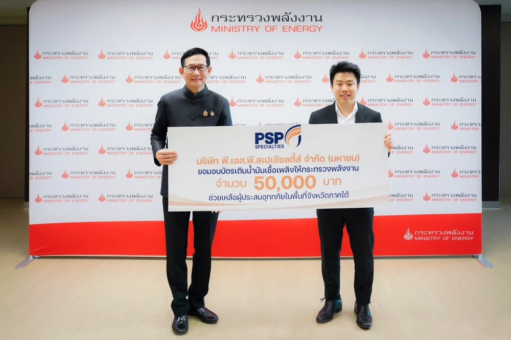 PSP ได้ร่วมมอบความช่วยเหลือผู้ประสบภัยน้ำท่วมภาคใต้ เมื่อวันอังคารที่ 2 ธันวาคม 2568 ที่ผ่านมา ณ ห้องประชุม 8 ชั้น 15 ศูนย์เอนเนอร์ยี่คอมเพล็กซ์ อาคารบี กระทรวงพลังงาน โดยมีนายอรรถพล ฤกษ์พิบูลย์ รัฐมนตรีว่าการกระทรวงพลังงาน เป็นประธานในพิธี พร้อมกับองค์กรและบริษัทในอุตสาหกรรมเกี่ยวกับพลังงาน